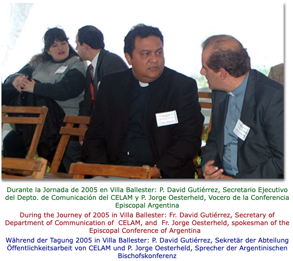 Villa Ballester, Gran Buenos Aires, 20 agosto 2005, con la presencia del P. David Gutiérrez, secretario ejecutivo del Depto. de Comunicación y Prensa del CELAM; Mons. Jorge Casaretto, presidente de la Comisión de Comunicación del Episcopado argentino y el P. Jorge Oesterheld, vocero del Episcopado argentino.