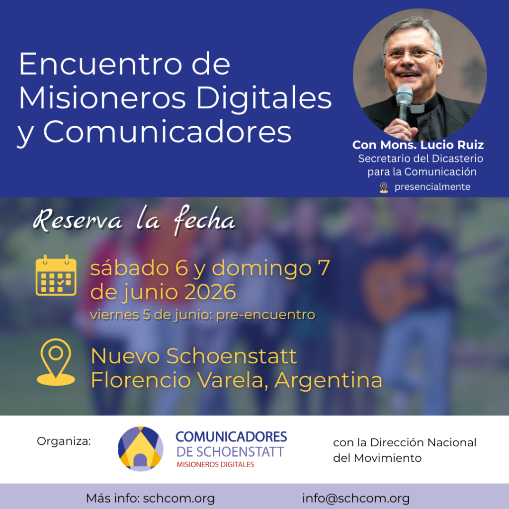 Este año, desde Comunicadores – Misioneros Digitales de Schoenstatt, dimos pasos valiosos ofreciendo una serie de webinars inspirados en el Jubileo de los Misioneros Digitales e Influencers Católicos. Contamos con el acompañamiento invaluable de Mons. Lucio Ruiz, secretario del Dicasterio para la Comunicación, quien aportó claridad, visión y motivación para poner alma y sentido a esta misión.